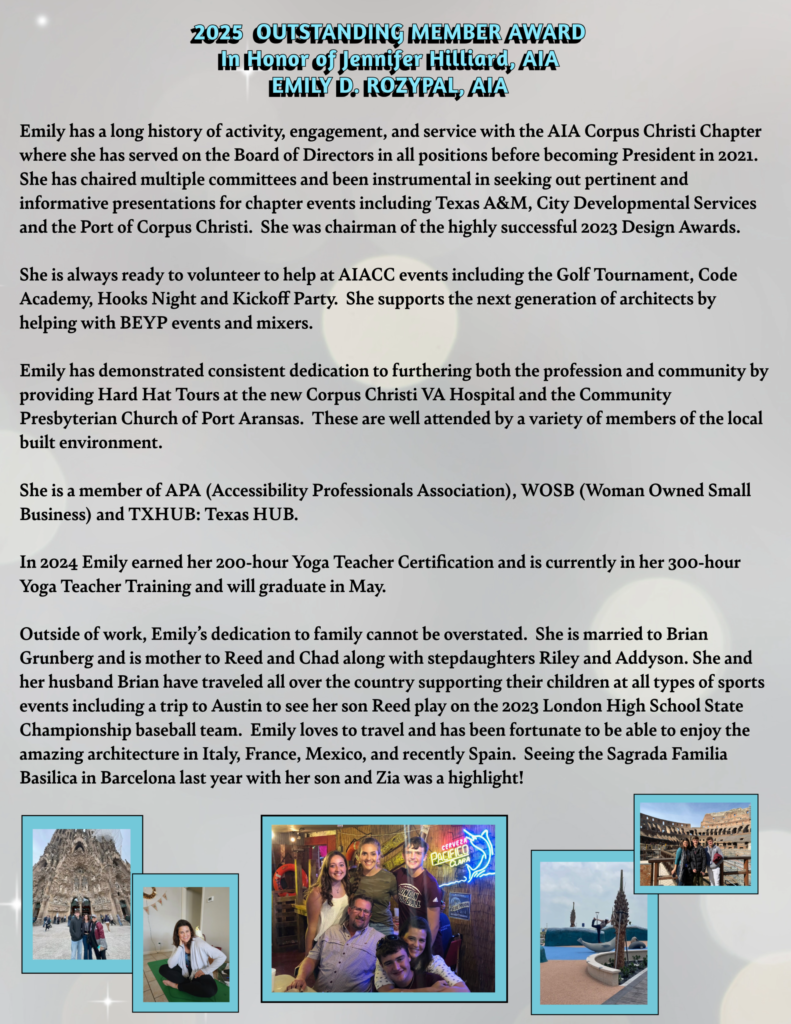 Learn MoreAIA Corpus Christi Allied Members are professionals who contribute to and benefit from Corpus Christi’s dynamic design and construction industry. Created to promote communications among all members of the design and construction team, allied membership is open to engineers, planners, landscape...